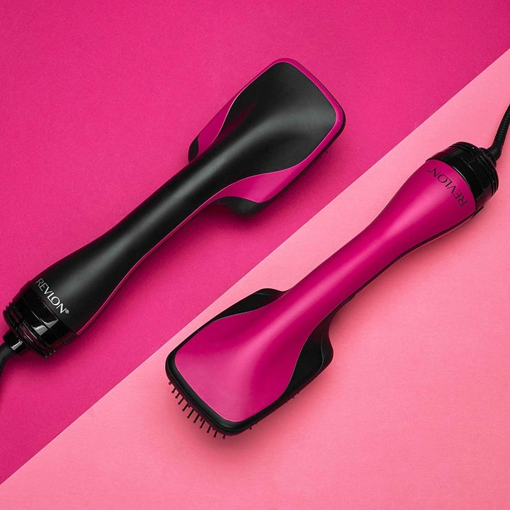 8. Revlon One-Step Hair Dryer And Styler brings pro-like blowouts right to your ~fingertips~ by creating sleek, frizz-free 'dos in half the time. How? Flexible tangle-free bristles smooth and style your hair as you brush, while negative ions condition and reduce static as you dry. The result: an easy-peasy glossy mane.